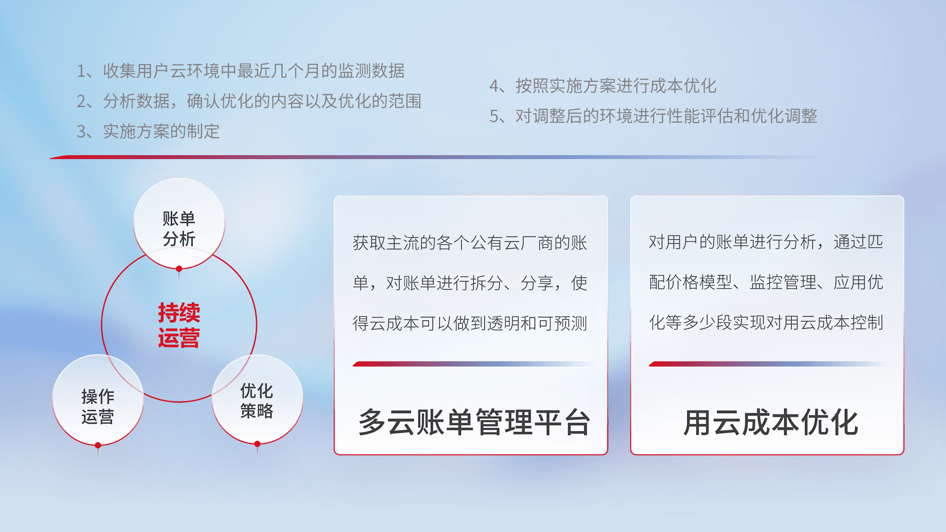 监控业务系统资源开销,,,对资源的消耗精确计量,,,,实现费用的透明化管理,,不断提升资源使用率,,,调整资源购买方式,,,,降低资源费用成本,,用云成本可预测、、用云费用可优化,,,云资源配额有据可依。。